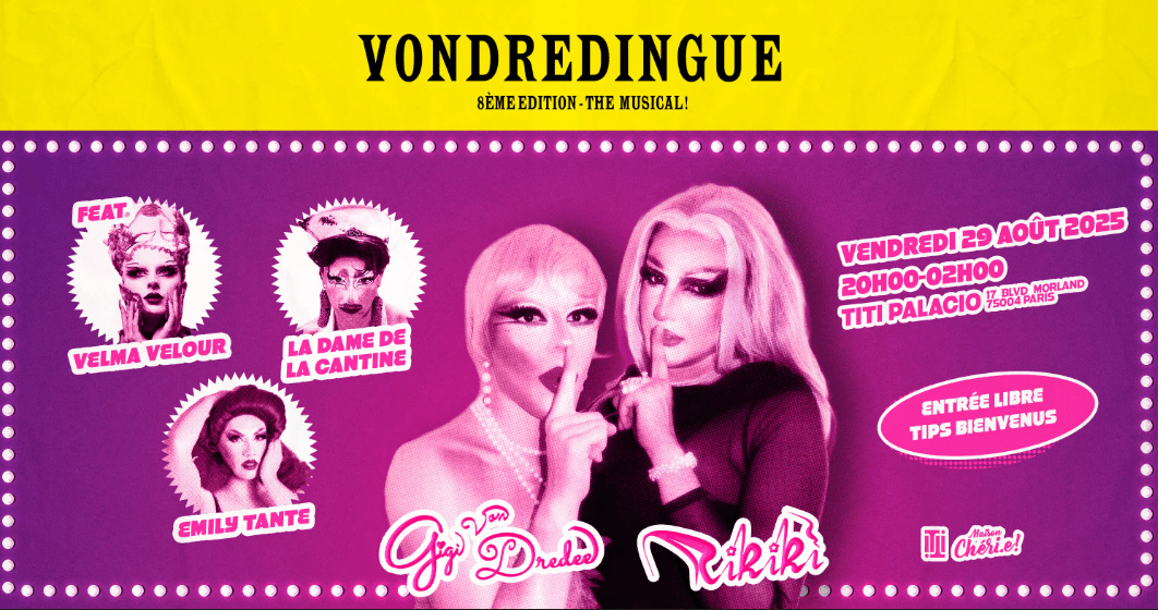 📌 Lien Shotgun : https://shotgun.live/events/drag-shows-dj-set-games-la-vondredingue-the-musical