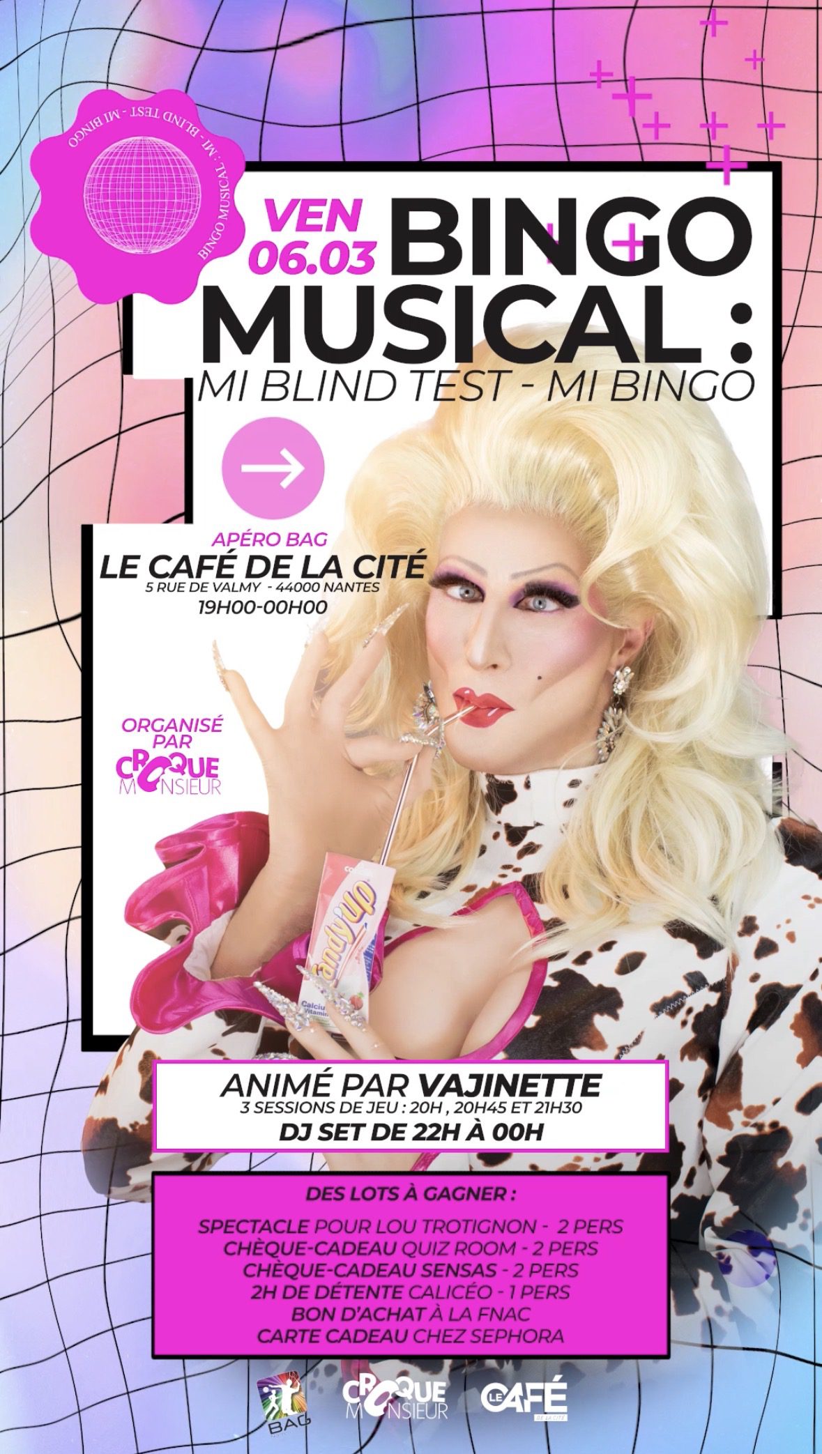 Bingo Musical animé par Vajinette, des lots à gagner, et DJ Set de 22h à 00h