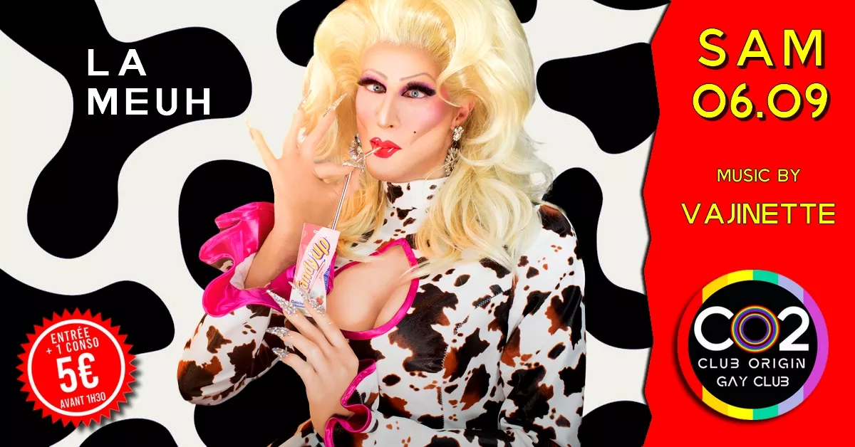 Oh la vache !!! Samedi 6 septembre ce sera la toute nouvelle soirée LA MEUH avec une déco oufissime tacheté de noir et blanc avec l’incroyable, la délirante et pour la première fois derrière les platine du CO2, mademoiselle VAJINETTE