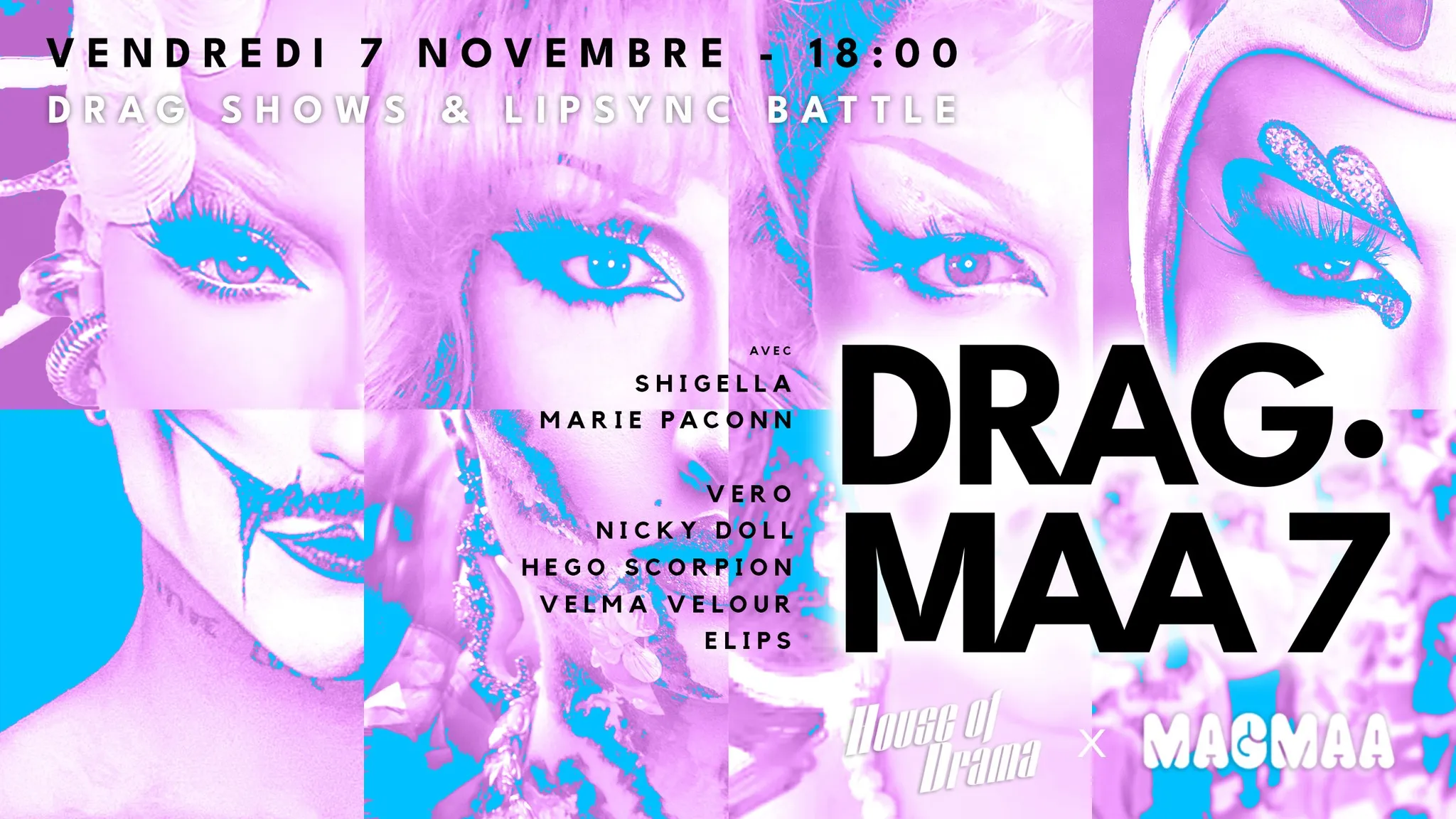 SURPRISE !!! 💥 La House of Drama vous a concoté non pas une, mais deux soirées de folie pour un WEEKEND MAGMAA ! Et comme on fait pas les choses comme tout le monde, on a décidé de faire la 7 avant la 6… Rdv donc dès le vendredi 7 novembre à partir de 18:00 avec un tout nouveau casting de STARS ⭐️