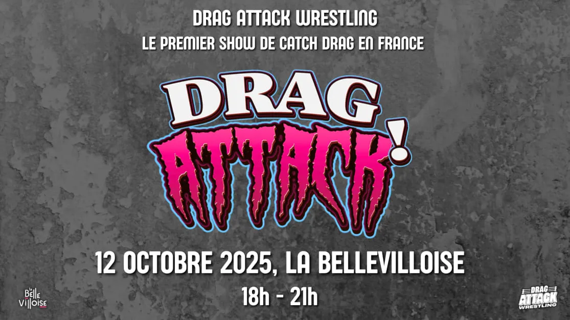 Après une première saison explosive, pleine de rebondissements, de performances déjantées et de combats aussi spectaculaires que féroces, la première promotion de catch drag en France revient à la Bellevilloise pour un rendez-vous mensuel 100% SLAY : DRAG ATTACK! 💥👑