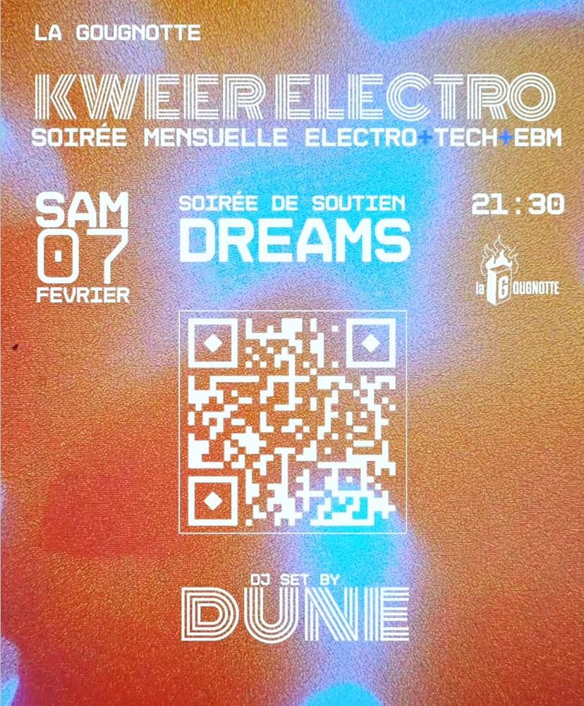La prochaine @kweerelectro est consacrée à une soirée de soutien à @dreams_asso, une association qui œuvre pour l’accompagnement et la visibilité des personnes LGBTQIA+, en particulier les plus marginalisées.